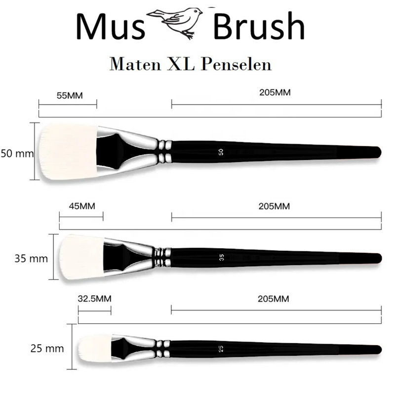 MusBrush Penseelset XL 01 ~Background brush-3 delig Synthetisch